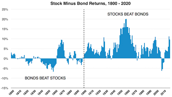 stock portfolios started outperforming bonds